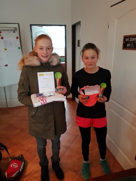 Julinka Tichá a Maruška Švejcarová - 2. místo ve čtyřhře na turnaji mladších žákyň v Poděbradech (leden 2019)