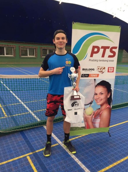 Max Hegenbart - vítěz ve čtyřhře na turnaji dorostenců kategorie B ve Vysočanech (únor 2019)