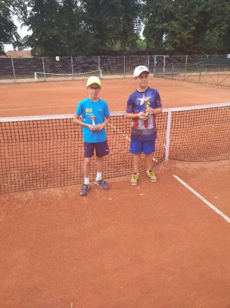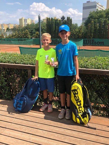 Tomáš Prokůpek a Kuba Mráz - Tomáš 2.místo ve dvouhře, Kuba 3. místo ve dvouhře a spolu 2. místo ve čtyřhře na domácím turnaji mladších žáků (červen 2019)
